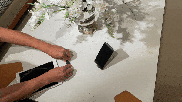 スマホスタンドやiPadスタンドにもワンタッチで変身!しっかりと重厚感のあるつくりなので安定操作が可能。動画視聴中にタップしても倒れにくいです。