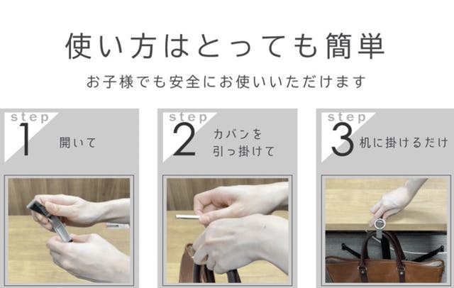 1 開いて 2 カバンを引っかけて 3 机にかけるだけ