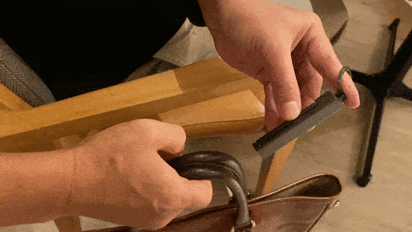 『#スマホルダー』は一見すると、スタイリッシュなアクセサリーのようなデザインですが、なんと耐荷重は約16kgの頑丈なつくりです。ノートパソコンを入れたカバンや、リュック等も余裕で掛けられる頼もしいタフなアイテムなんです。