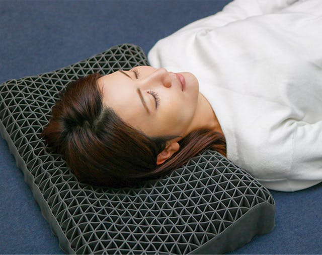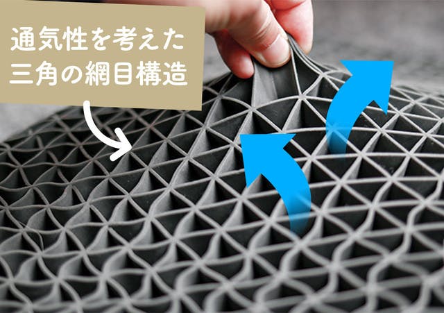 『Sleepia』は通気性を考えた三⾓の網⽬構造なので、効果的に枕の中の空気を循環。