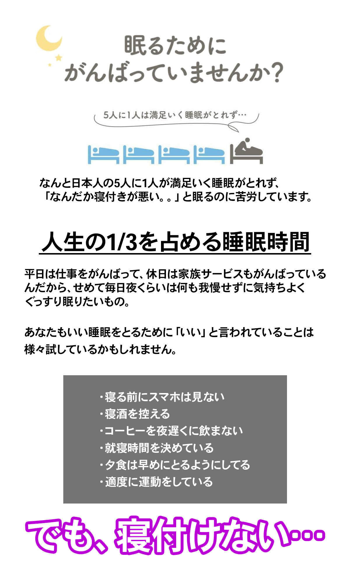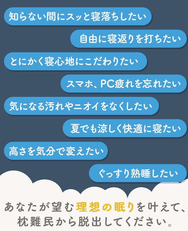 頭の置く場所がしっくりこなくて、布団に⼊ってから10分も20分も眠れないということありますよね。