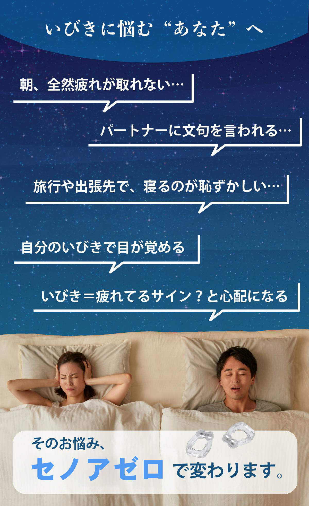 セノアゼロは、鼻に装着することで、いびきの軽減をサポートする小型のデバイスです。