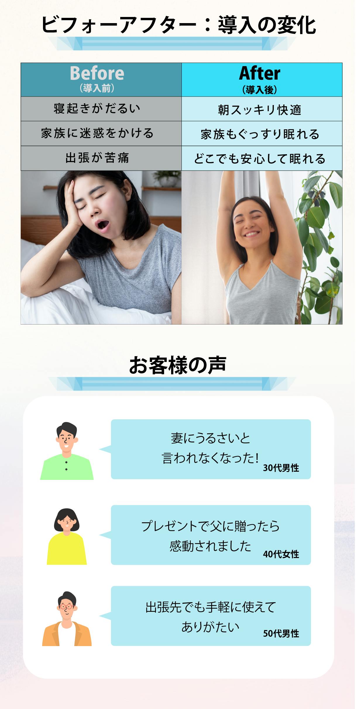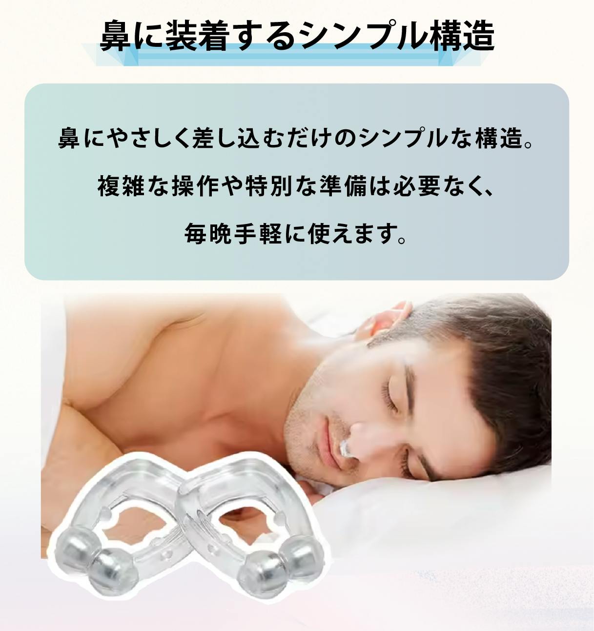 自然な呼吸をサポートすることで、睡眠中のいびきをやわらげます。