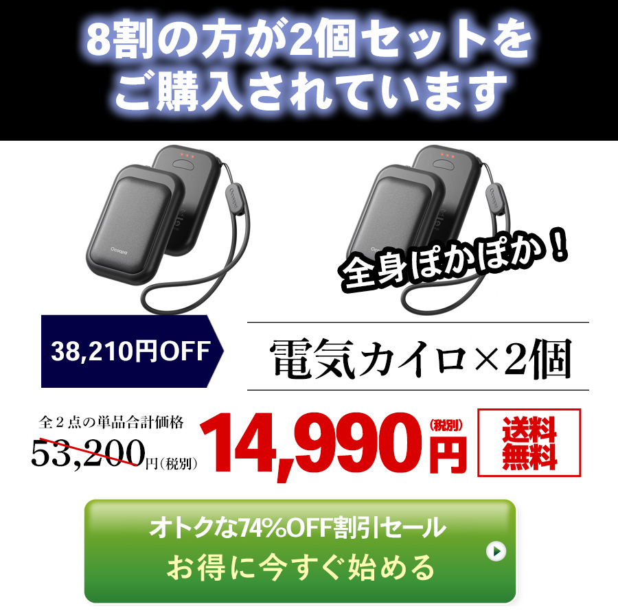 USB充電式なので、電池を補充したりする手間は必要ありません。使い捨てのカイロと違い繰り返し使えるのでゴミが出ず、環境にもやさしい。付属のUSB充電コードは2股になっているので、2つのハンドウォーマーを同時に充電可能です。