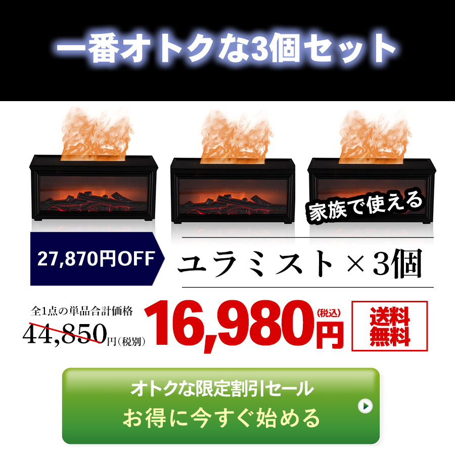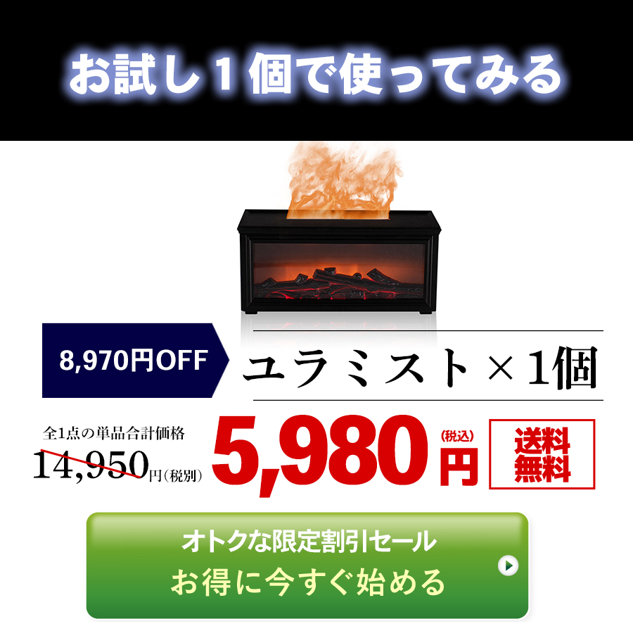 【新感覚!燃えない炎+アロマ加湿器】 ユラミスト登場!